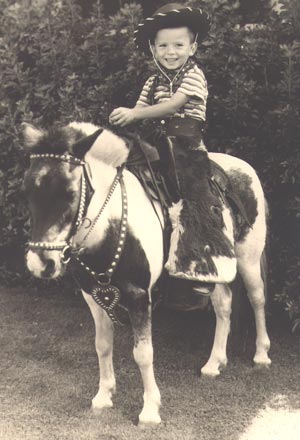 Robert at 4 years old. Every summer a photographer would bring his pony into the neighborhood and take pictures. He loved animals and was really having fun dressed as a cowboy.